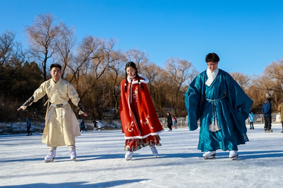 1月7日,北京年夜學未名湖冰場向市平易近開放,預定游覽校園勝利的游客即可享用冰雪樂趣。