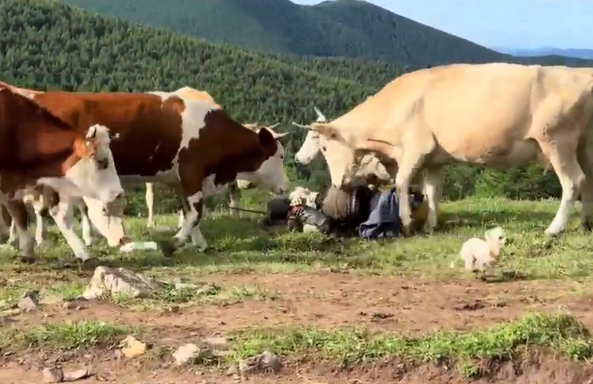 ·游客喂牛肉干、敲打牛屁股遭牛群“踩踏”?五臺山景區回應:疑似因其攜帶的犬只惹起。