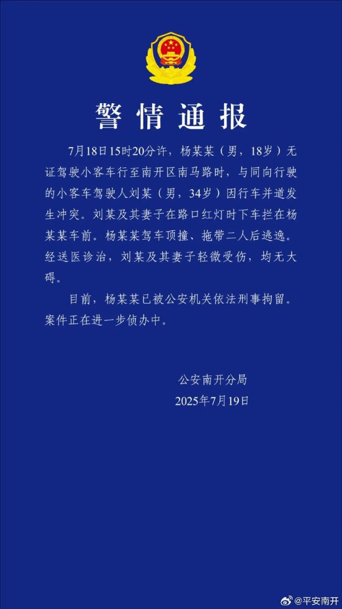 ·天津警方傳遞:18歲男人無證駕駛頂嘴、拖帶二人花姐,我的心就痛——”后逃包養網逸,被刑拘。