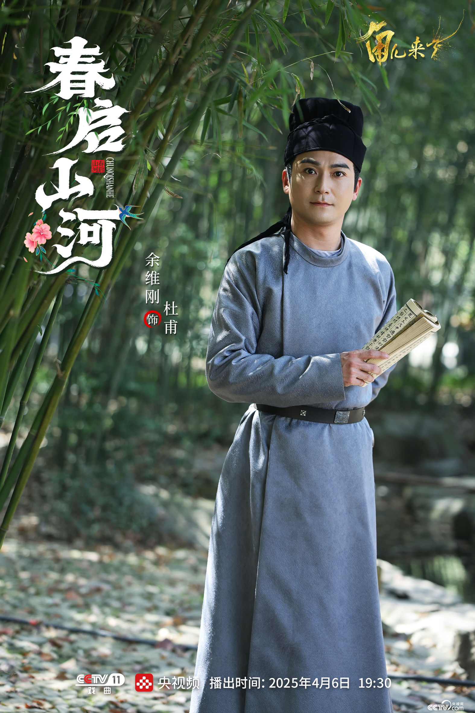 “遲日山河麗,東風花卉噴鼻。”杜甫手包養網推薦持竹簡,布鞋粘泥,臉色伸展地看著天空。