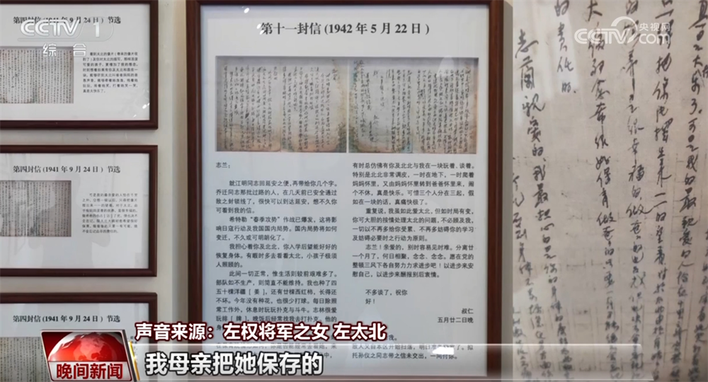 左權將軍之女左太北稱:“我那時都42歲了,我母親把她保留的我父親的11封家信寄給了我,就看了這些家信以后,我才覺著我父親那么心疼我、那么關懷我。”