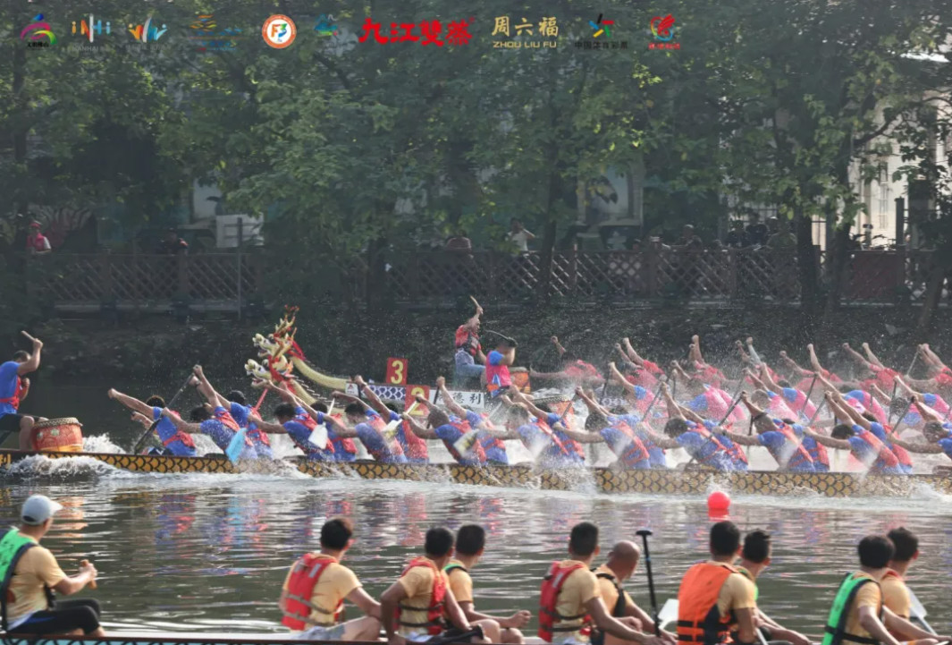 里水河河面百舸爭流,萬槳齊搖,踏包養浪搶先,竊匪們奮力劃槳擊水,演出了一場賽龍奪錦的水上盛宴。