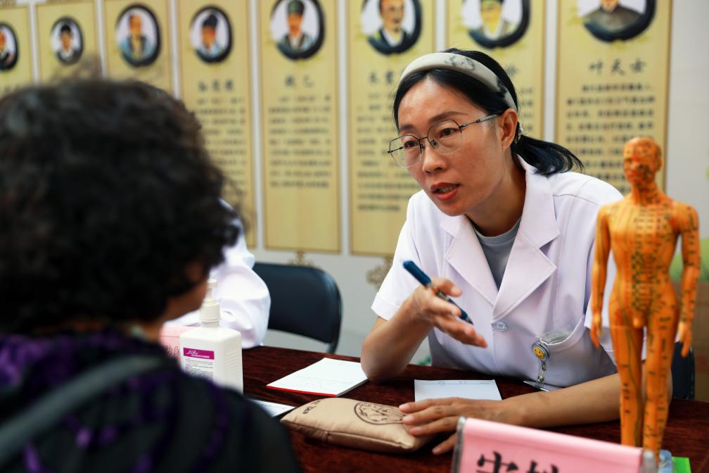 7月15日,甘肅省白銀市白銀區西醫夜市,白銀市包養網單次婦幼保健院主治醫師宋婉玲(右)在義診。新華社記者 郭剛 攝